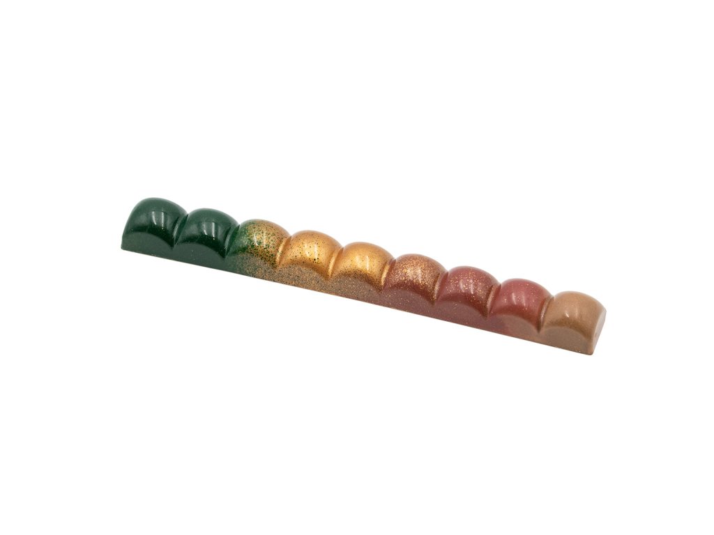 Každý kus je pečlivě vyráběn a ručně zdoben, aby potěšil nejen chuťově, ale i vzhledem. Tyčinka nabízí bohatý čokoládový zážitek, ideální jako reprezentativní dárek, sváteční pochoutka nebo sladkost pro sdílení s rodinou.