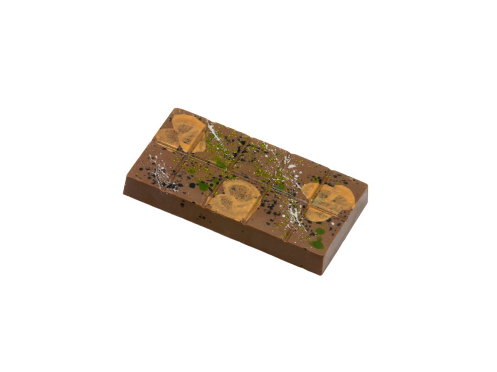 Nechte se okouzlit tabulkou dubajské čokolády! Hedvábná mléčná čokoláda ukrývá náplň z jemné pistáciové pasty, křupavého těsta kataifi a kapky voňavého tahini. Spojení luxusu a orientálních chutí v každém soustu.
