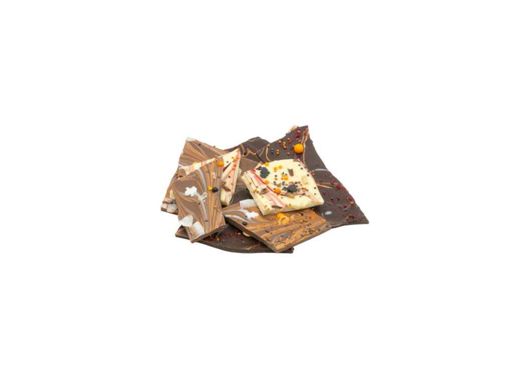 Díky třem druhům čokolády si na své přijdou milovníci jemnější i výraznější chuti, přičemž každá část má svou vlastní osobitost. Dohromady tvoří 150 g ručně vyráběné pochoutky, která spojuje poctivé řemeslné zpracování, vizuální nápaditost a prvotřídní suroviny. Tato lámaná čokoláda je součástí naší stálé nabídky a je ideální volbou pro chvíle, kdy chcete potěšit sebe nebo své blízké něčím skutečně výjimečným.