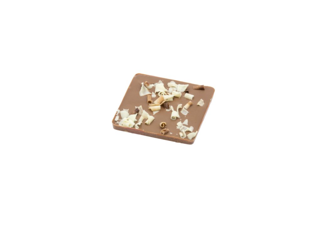 Malá tabulka mléčné čokolády, ručně malovaná barevnými detaily. Na zadní straně je čokoláda posypaná mini trubičkami z čokolády, které dodávají křupavou texturu a ještě bohatší chuťový zážitek. Díky pestrému provedení je tato tabulka oblíbená jako malý dárek, sladká odměna pro děti nebo drobná pozornost pro radost. Praktické samostatné balení zajišťuje čerstvost a snadné použití jako součást dárkových balíčků nebo sladkých stolů.