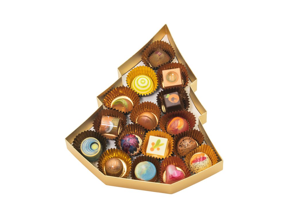 Vánoční kolekce čokoládových pralinek – 16 výjimečných chutí v krásné krabičce.