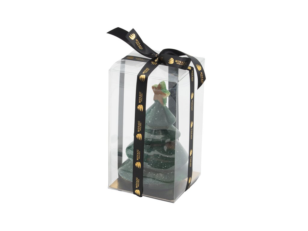 Uvnitř se skrývá překvapení – tři mléčné čokoládovové figurky, které dodávájí tomuto sladkému dárku hravý nádech. Každý stromeček je vyráběn s důrazem na detail a poctivou chuť pravé čokolády.